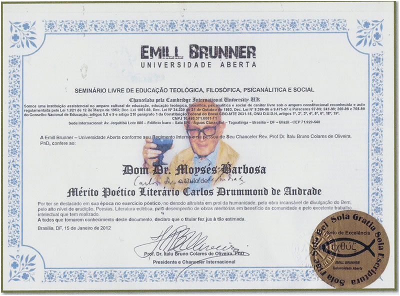 +Don Moyses feels very honored and grateful to Emill Brunner University of Brasilia, and its Director and Chancellor International, Professor Dr. Italu Bruno Colares de Oliveira.