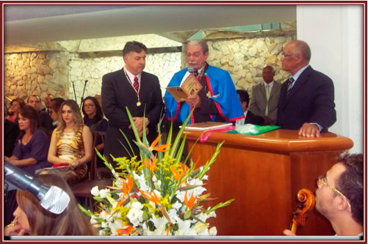 +DOM MOYSES ENTREGOU AO NOVO BISPO, DR. CIRO OTAVIO, O DIPLOMA QUE LHE CONCEDE O TITULO DE COMENDADOR GUARDIÃO DA SANTA DOUTRINA (COM O GRÃO-COLAR ESPIRITO SANTO CONSOLADOR), MAIS O TITULO DE MINISTRO DA SAGRADA UNÇÃO E SUA BÊNÇÃO EPISCOPAL IMPRESSA.